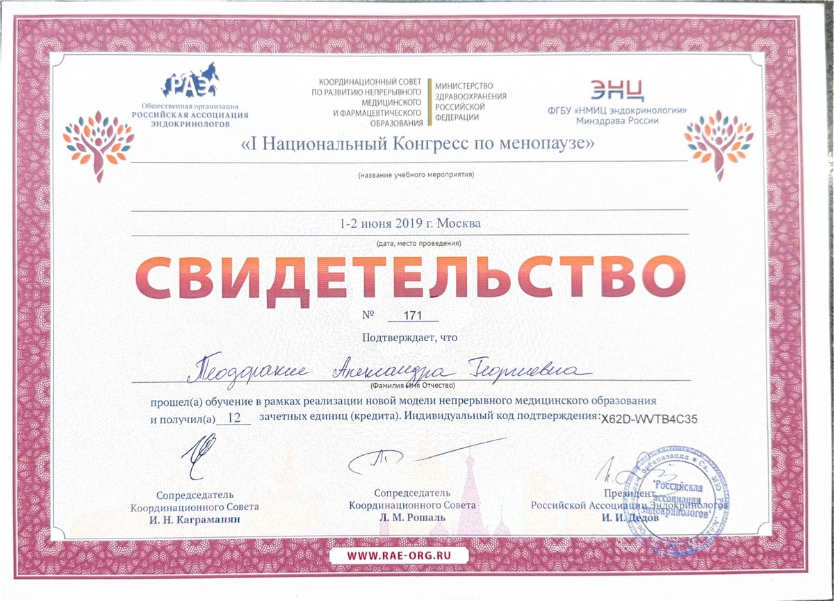 - 1-2 июня 2019 г. Участие в 1 Национальном Конгрессе по менопаузе. г. Москва.ЭНЦ