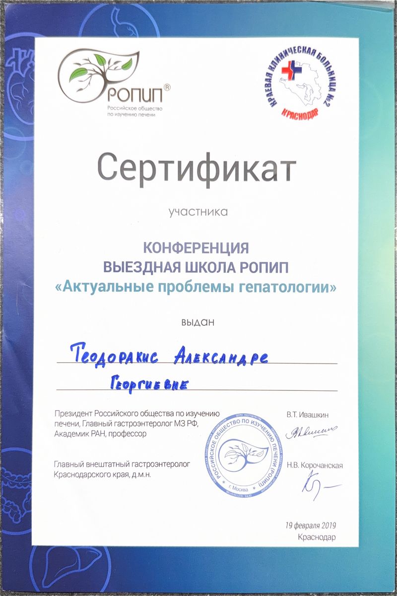 - 02.2019 г. Участие в конференции «Актуальные проблемы гепатологии» г. Санкт-Петербург.